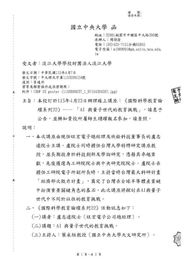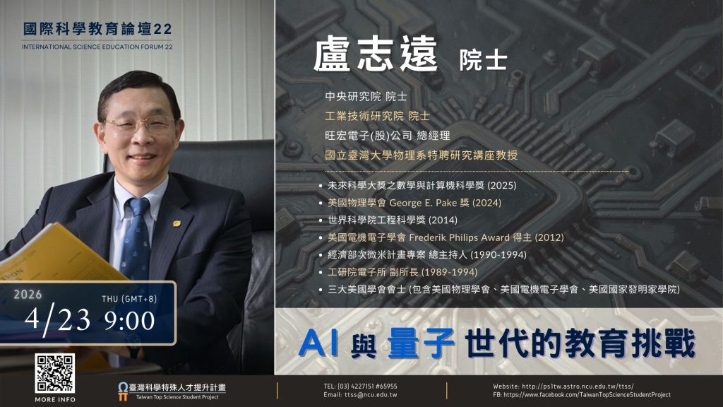 國立中央大學線上講座《國際科學教育論壇系列22》— 「AI 與量子世代的教育挑戰」